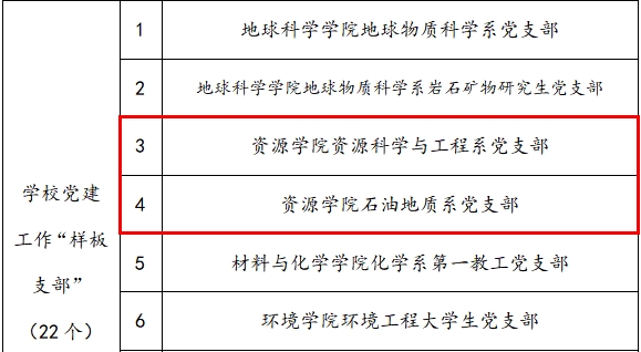 11月14日,公司党委公布了公司第一批党建“双创”工作项目验收和第二批党建“双创”工作项目培育创建结果。资源公司党委、石油工程专业本科生党支部以突出的创建成效顺利通过公司首批党建工作“标杆分党委(党总支部)”“样板支部”项目验收;同时,有5个项目获得第二批立项培育,其中资源科学与工程系教师党支部、石油地质系教师党支部入选公司党建工作“样板支部”、矿床学研究生党支部入选“研究生样板党支部”、张启扬和万晓帆入选“研究生党员标兵”的培育创建名单。
