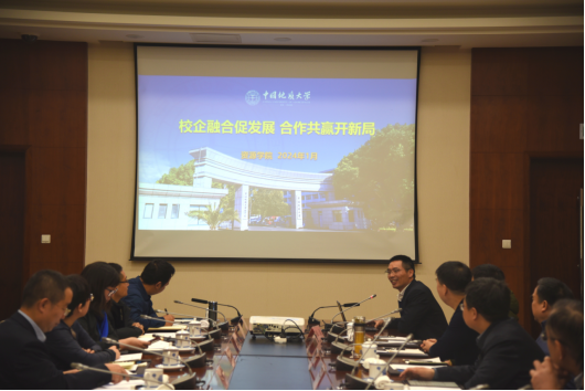 在交流发言环节,陆永潮教授介绍了科研团队在四川盆地页岩油勘探开发领域工作基础和最新进展;叶加仁教授回顾了与中原油田开展项目合作的历史,介绍了石油地质系主要科研领域和人才培养情况;蔡忠贤教授介绍了石油工程系传统优势学科方向和新兴学科方向拓展、所在团队研究进展等情况;王小明副教授、张磊副教授分别介绍了盆地矿产系、石油工程系办学发展、教师团队、科研平台、人才培养等情况。宿亚仙介绍了油田后三年科技攻关重点项目实施情况;科技信息部油田专家刘晓敏介绍了油田科技项目规划管理、高水平实验室和科研平台建设等情况;党委组织部(人力资源部)油田专家马传根介绍了地大员工在油田工作和发展总体情况,同时就油田人才引育政策、招聘需求、员工薪酬待遇和发展支持等作了说明;物探研究院经理万涛介绍了物探研究院主要业务领域和当前技术需求情况。双方围绕非常规能源勘探开发、石油伴生矿产勘查、油田增产增效、人才培养、技术交流、员工就业等交流讨论。