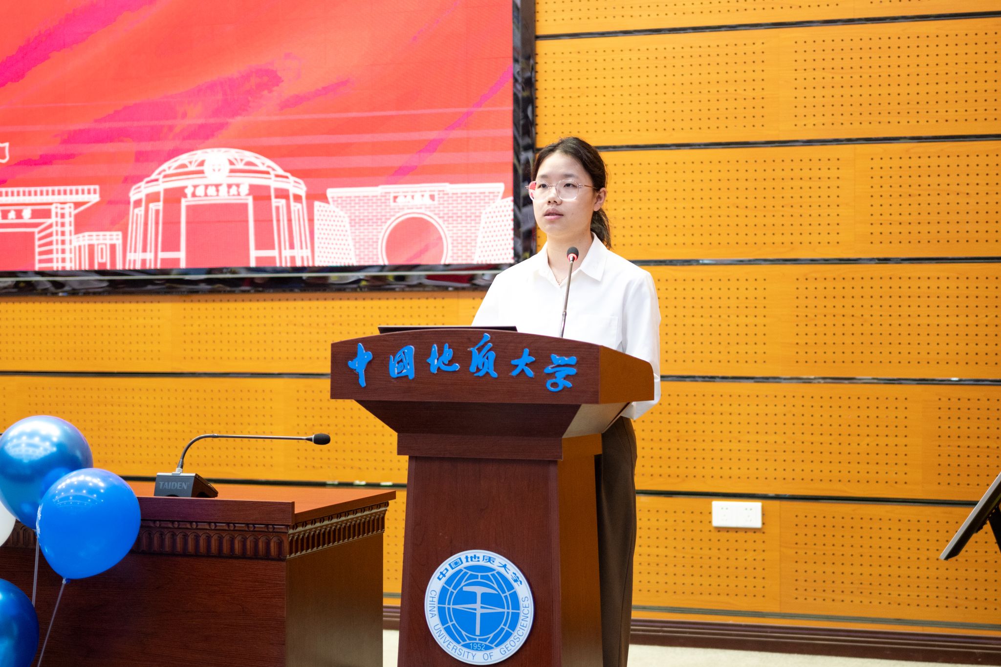 在校生代表、新任员工会执行主席余慧发言。她感慨与学长学姐们共同度过的美好校园时光,对学长学姐圆满完成学业、奔向锦绣前程表示祝贺,并表达了对他们的真切祝福和不舍之情。她说道,全体在校生会以他们为榜样,在求学路上刻苦钻研,脚踏实地,踔厉奋发,勇毅前行,争取早日成长成才,共同肩负起为tyc122ccVIP争光,为地大添彩、为国家效力的重任。