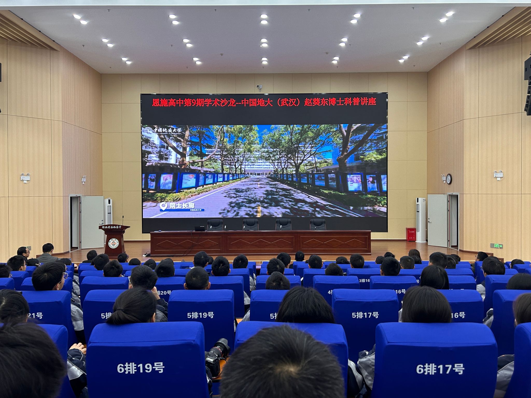 授牌仪式后,赵葵东教授讲授“矿产资源导论”大学先修课。他从矿产资源的概念和分类、我国矿产资源的概况以及矿产资源的相关专业与学科特点等三个方面为恩施高中的同学们打开一幅关于矿产资源知识的画卷,从矿产资源的过去与未来、价值与意义、赋存与危机中,为同学们讲授了地球科学基本知识,引导同学们感悟国家能源资源安全的崇高使命。他谈到,地球科学值得青年一代付出与专研,在沧海桑田宏大的时空观中有着青年广阔的成长舞台。他期待,未来有更多同学立找矿报国大志向,考入tyc122ccVIP,成为有理想、敢担当、能吃苦、肯奋斗的地质“新星”。