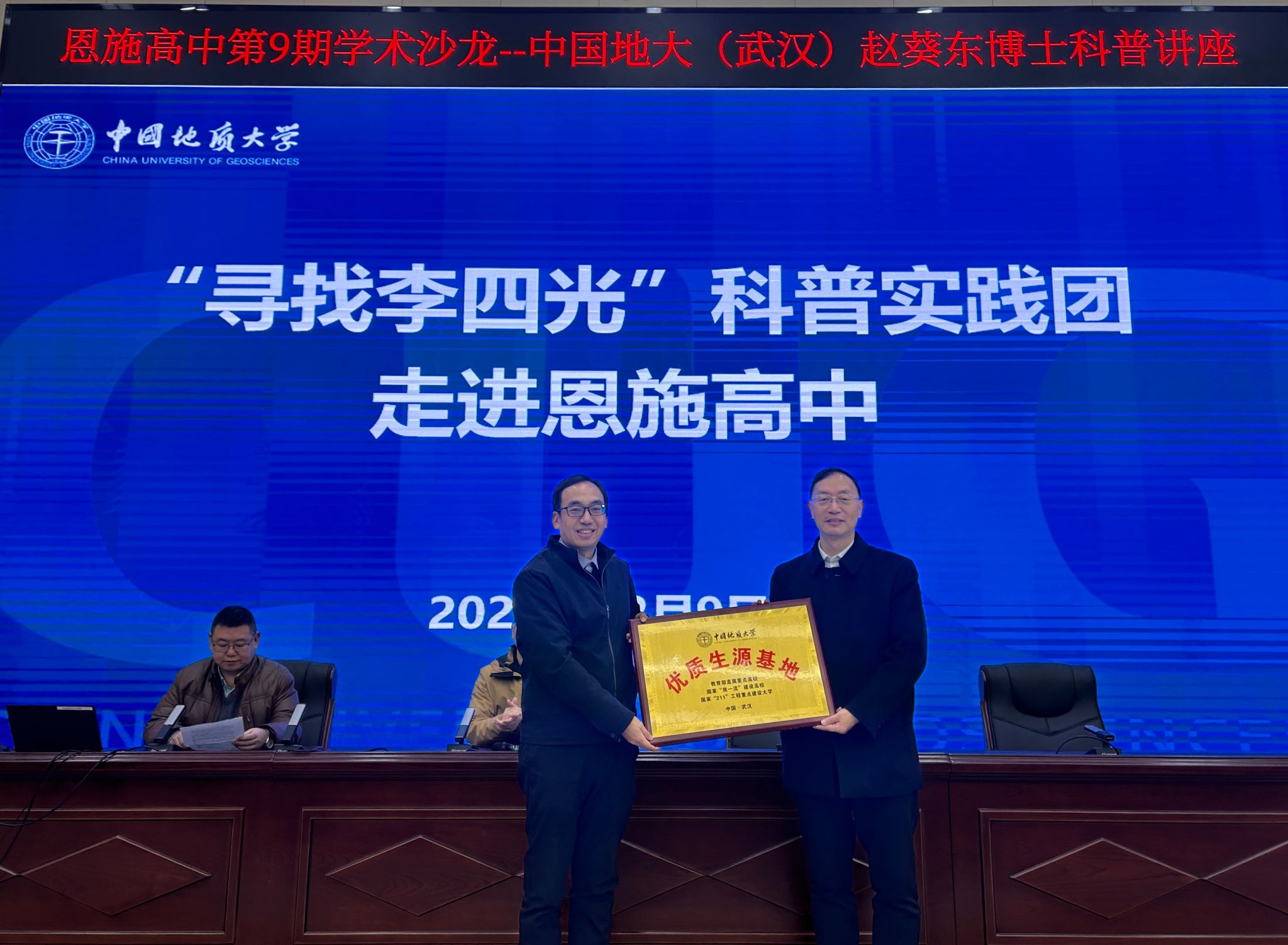 (通讯员 冯思佳 李前 刘睿)12月8—9日,公司研究生院常务副经理、tyc122ccVIP教授赵葵东,公司资源公司党委副书记谭文伦等一行5人前往湖北省恩施高中开展招生宣传,举行招生工作座谈会,为恩施高中授予“tyc122ccVIP优质生源基地”,讲授“矿产资源概论”大学先修课。恩施高中党委书记、董事长谭斌,教务处主任李绍贵等参加上述活动。