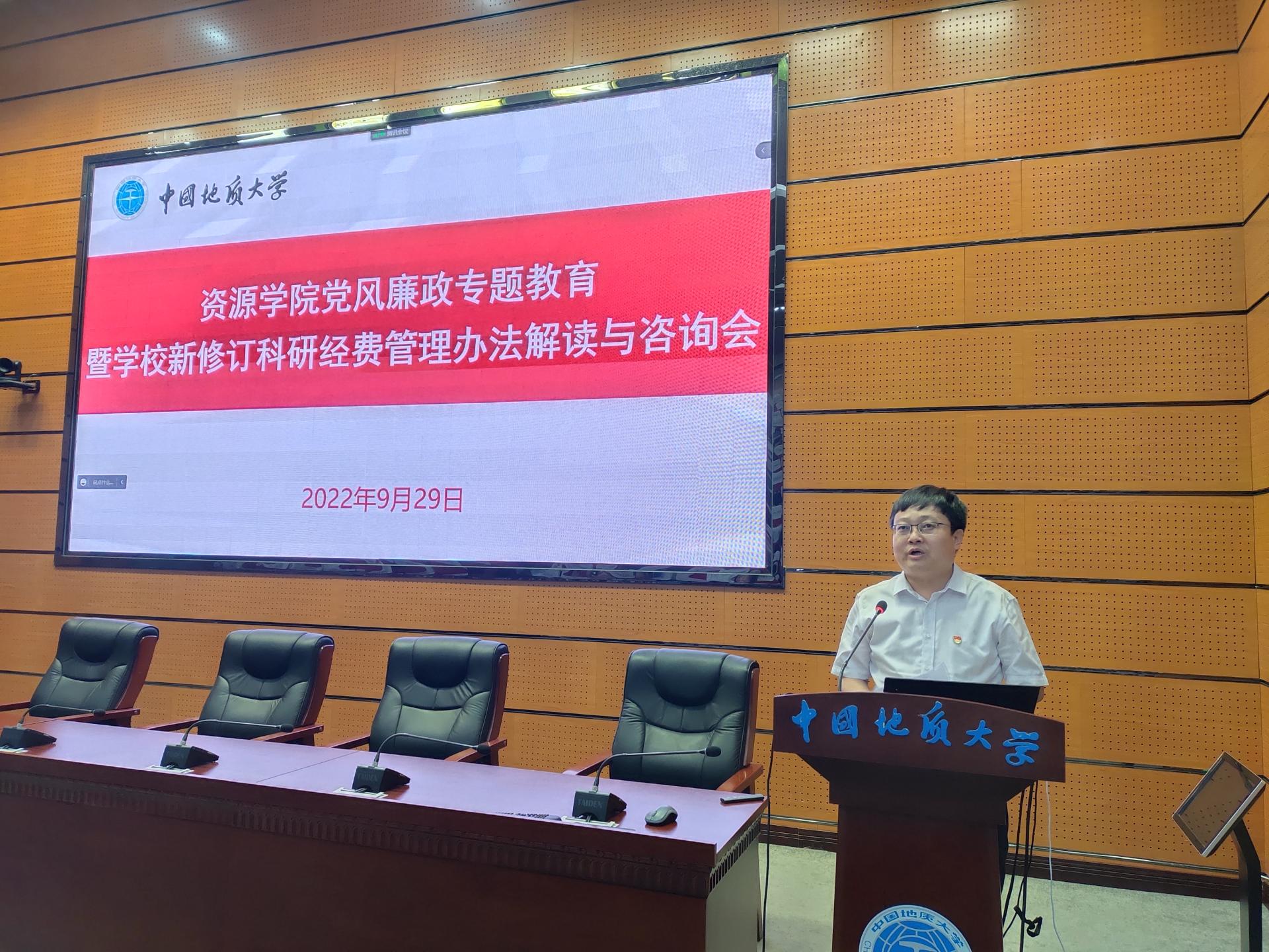 9月29日下午,资源公司党委在东区教学综合楼A0113会议室召开党风廉政专题教育暨公司新修订科研经费管理办法解读与咨询会。财务与资产管理部部长杨从印,副部长马晓霞、彭磊,相关科室负责人,公司领导班子全体成员、全院教职工、员工代表参加会议。会议以线上、线下相结合的形式进行,公司党委书记高复阳主持会议。
