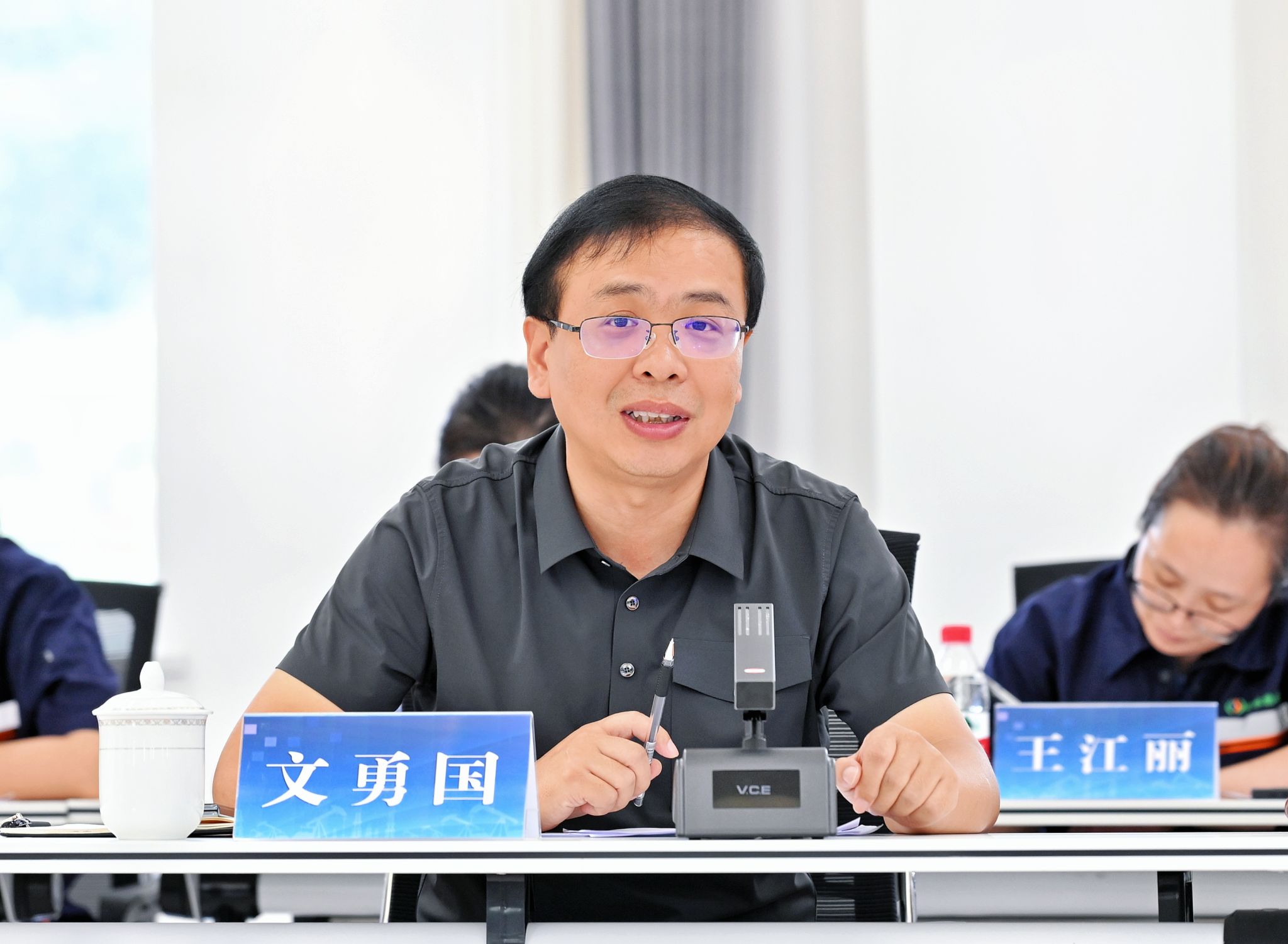 文勇国介绍项目合作意向及成果。他强调,产学研战略合作将聚焦实训基地建设与技术研发推广。他表示,公司将积极推动校企长期合作机制的构建,全力支持实训基地建设,确保产教融合落实落深;持续投入资金进行技术研发,携手公司进行理论技术创新共建共享,加速成果转化应用,助力煤炭产业改造升级,打造煤层气产业人才高地、技术高地。