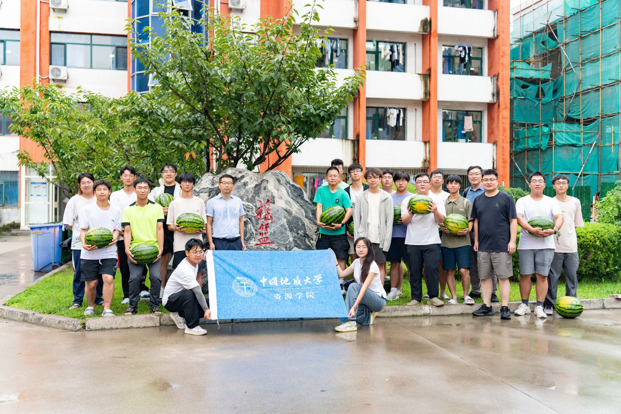 在员工公寓大厅,谭文伦为同学们发放消暑慰问品。他询问了同学们的食宿情况和实习体验,提醒实习期间要注意个人身体状况,希望同学们重视实践探究能力的锻炼,勇于提问、善于提问,在提问求证中将书本理论迁移至野外地质现象中,打好专业基础,浓厚专业兴趣。