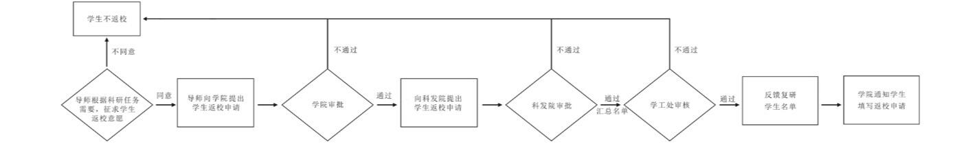 1.复研员工严格按照规定时间返校。 2.因个人原因无法按时到校的,联系本人导师,由导师协调办理入校查验。 |