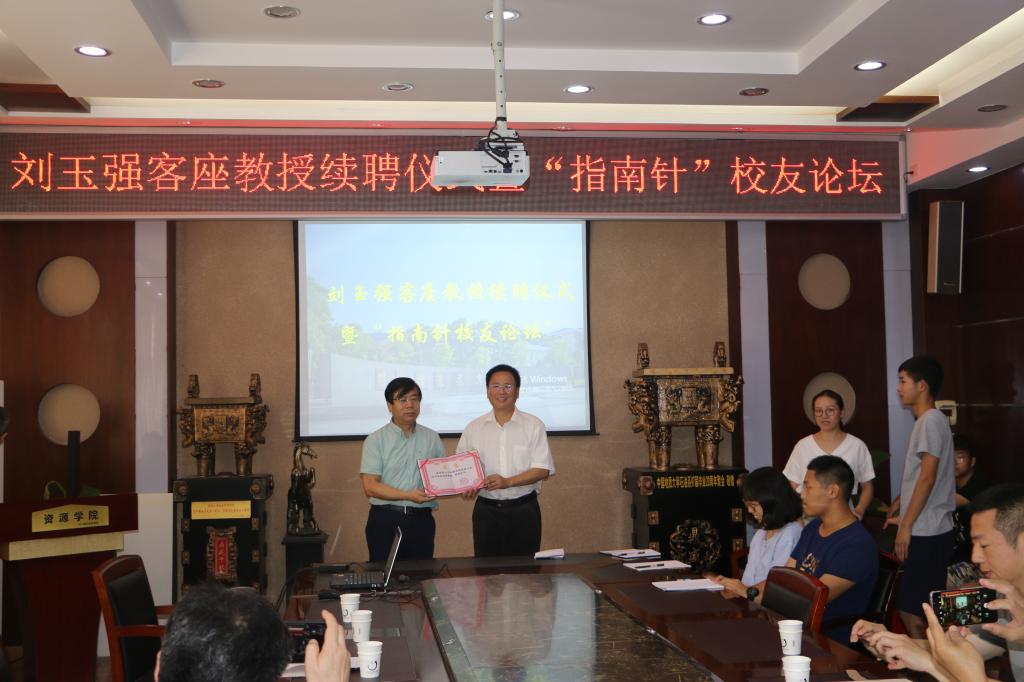 续聘仪式结束后,刘玉强教授做客“指南针”论坛,与师弟师妹共话成长。他以自己工作的经历为主线,勉励师弟师妹们树立信心,热爱专业,努力钻研,敢于吃苦,勤于干事。他指出,地质专业是公司一流学科,前途光明,事业伟大,只要肯投入,有毅力,就一定会有成就。