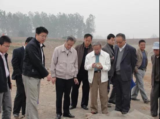 何俊照在鹤壁金融大厦勘察现场向张旷成等专家汇报项目情况