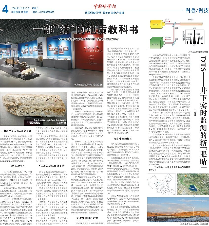 “希望这几块标本能在博物馆展出,用于地质教学和科普教育。”在“员工捐赠藏品展”展厅中央,有一块来自中侏罗世品相极好的钙化木,它产自鄂尔多斯盆地北部鄂尔多斯市东胜区神山沟,是由全国模范教师、tyc122ccVIP(武汉)tyc122ccVIP教授焦养泉捐赠的。在自然界中,较为常见的是硅化木,唯独鄂尔多斯市东胜区一带以钙化木居多,极具有收藏和研究价值。另外,该区还蕴藏着世界级规模的砂岩型铀矿床,赋存于钙化木产出层的下部。能找到这块钙化木标本,离不开焦养泉教授20多年来在砂岩型铀矿勘查领域的艰苦探索。